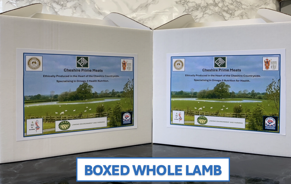 2 x Leg (bone- in); 4 x ½ Shoulder (bone-in); 6 x Leg Steaks; 8 x Loin Chops; 16 x Ribeye chops; 2x 500g Mince. (Liver and Kidneys available on request).